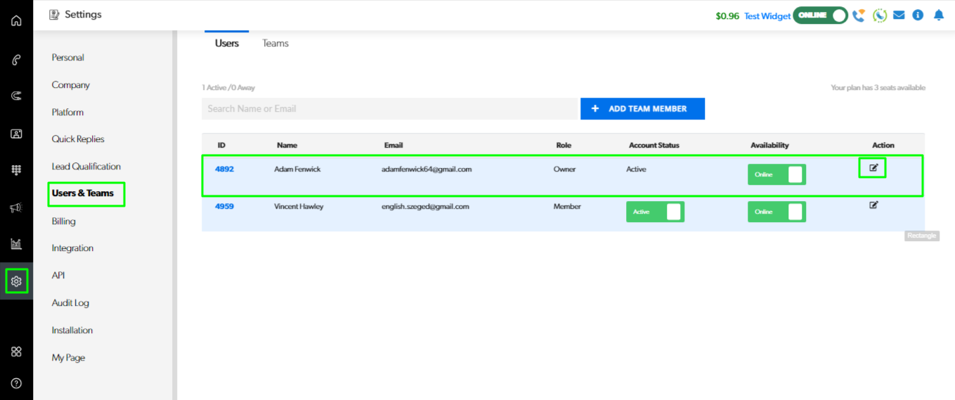Editing Agent Profiles: To view and edit an agent's profile, select the person from the list of agents by choosing the "Edit" option. You can edit their role and assign to a specific team.