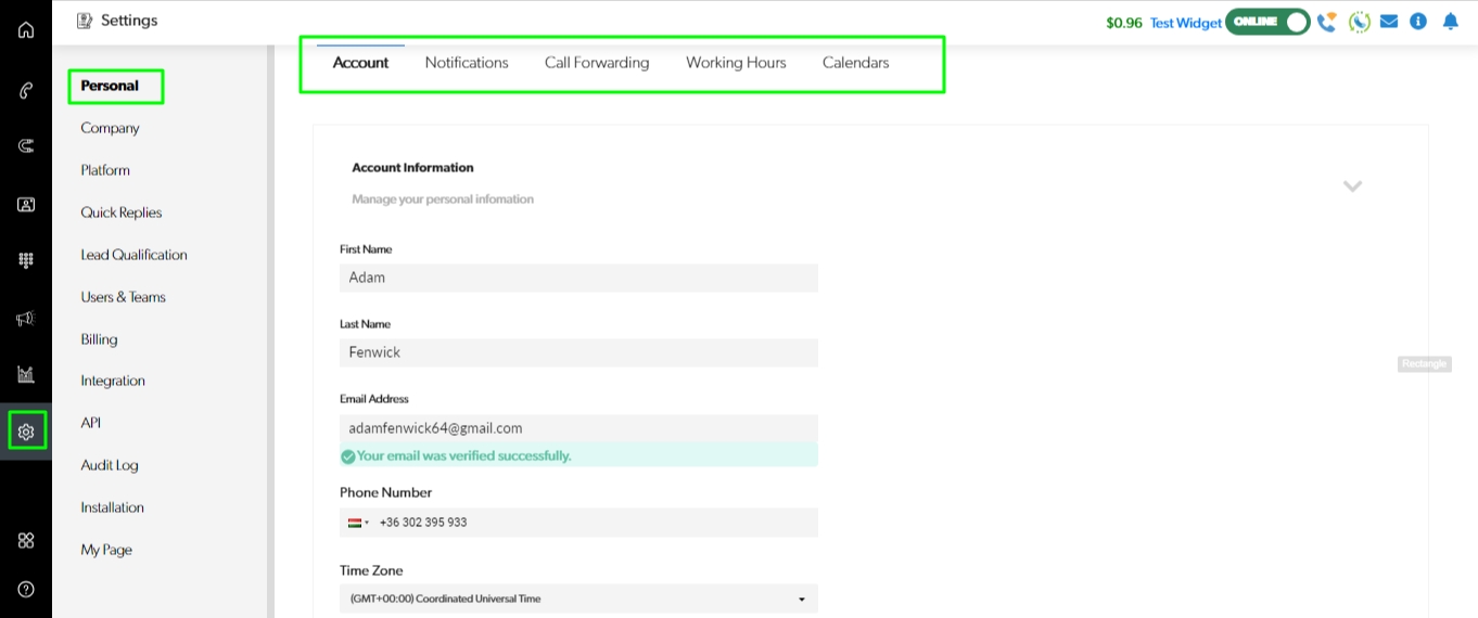 Agents can personalize their profiles: by adding and editing their photo, job title, working hours, notifications, call forwarding, connect their calendar and other personal account information. To edit user profiles follow this link.