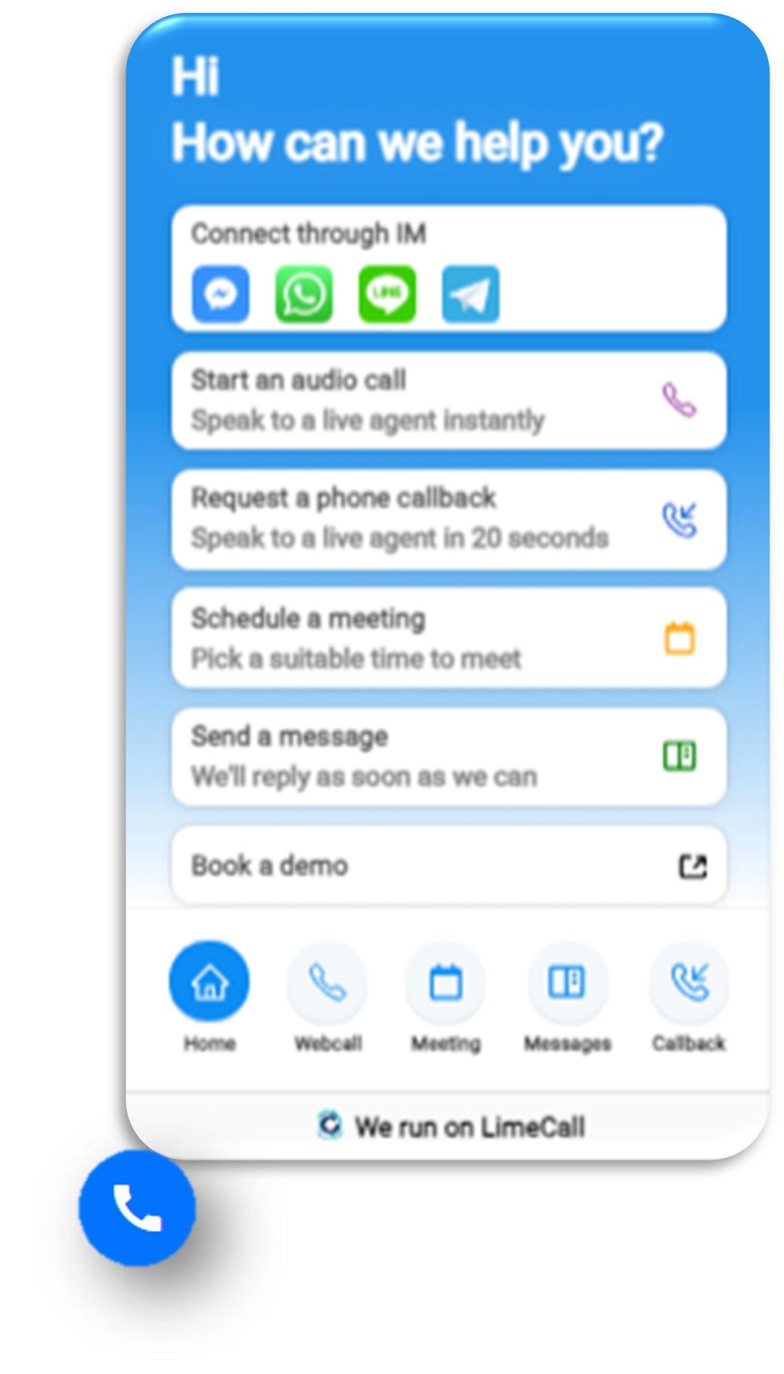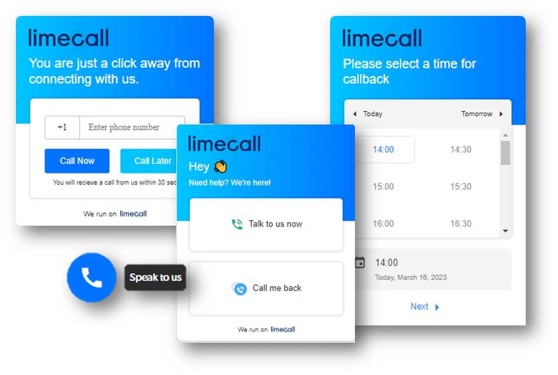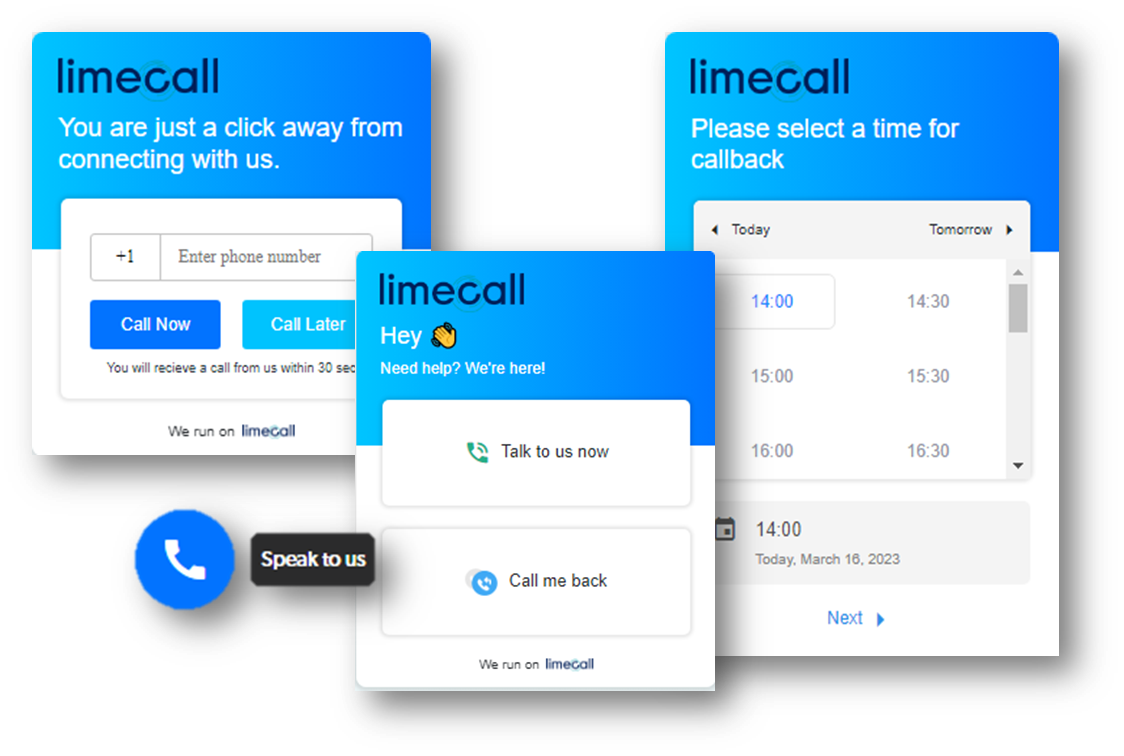 Once the customer interacts with the Widget, LimeCall's App comes into play.