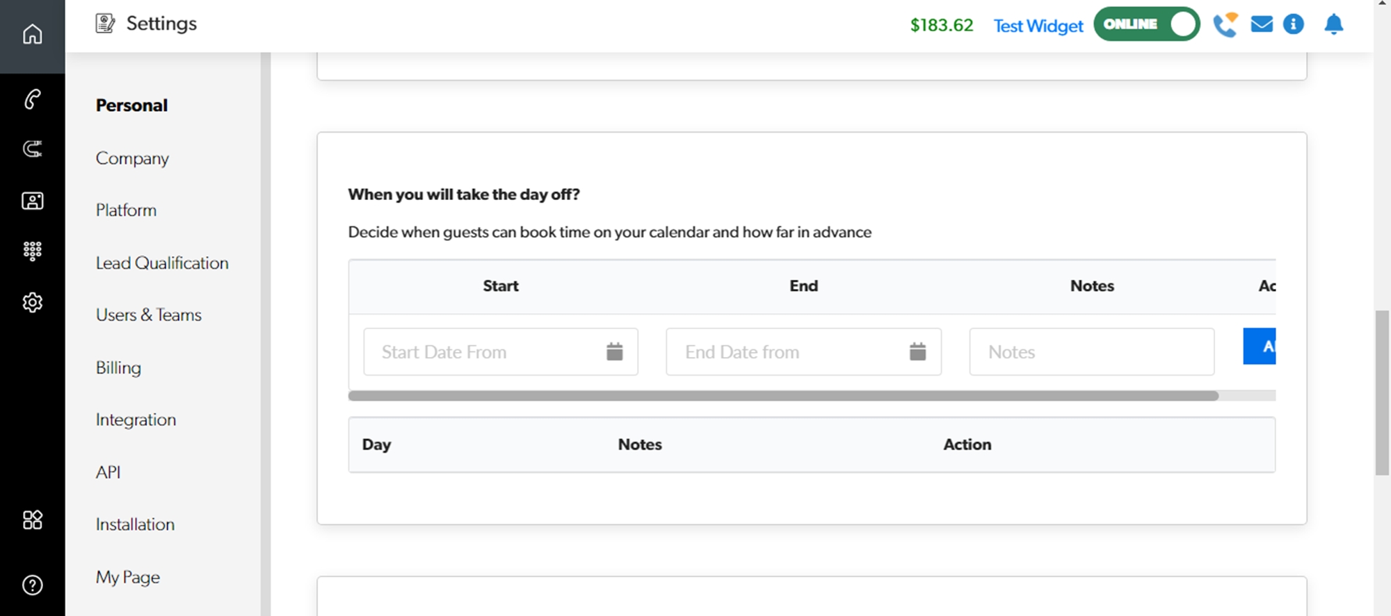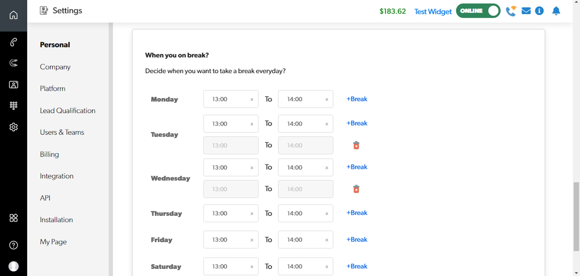 Once the Installation of a widget is done, set the your working hours and timezone for your widget and agents Individually