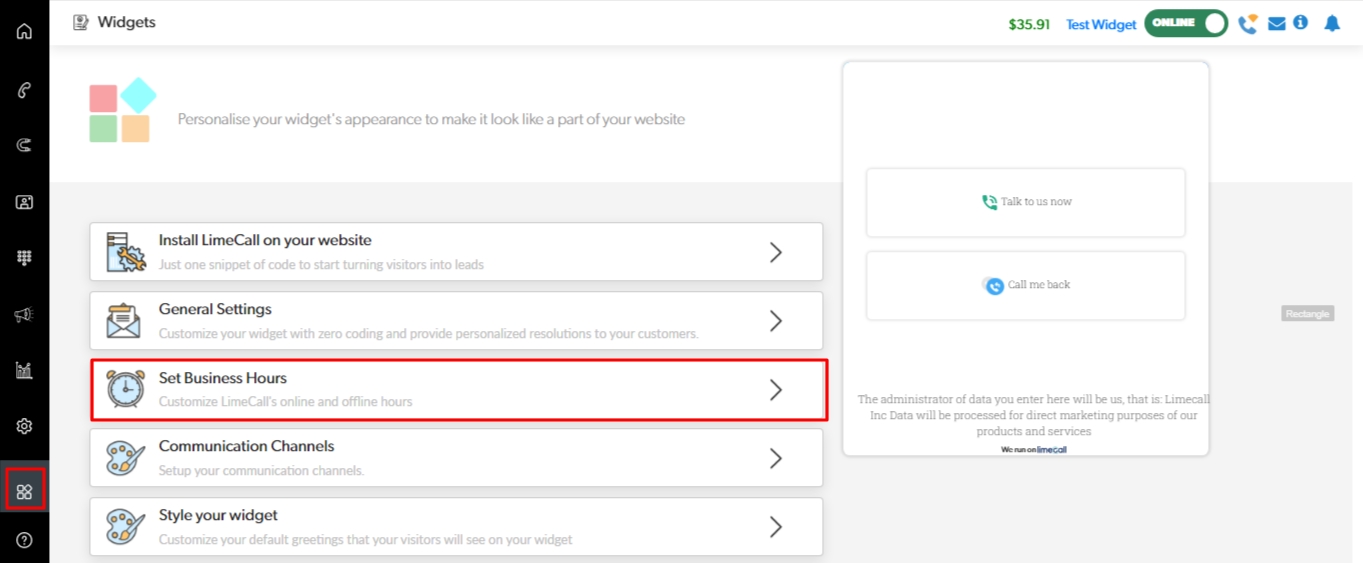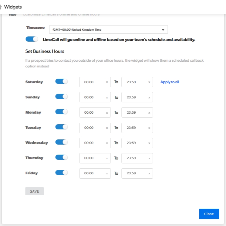 LimeCall will go online and offline based on your team’s schedule and availability.