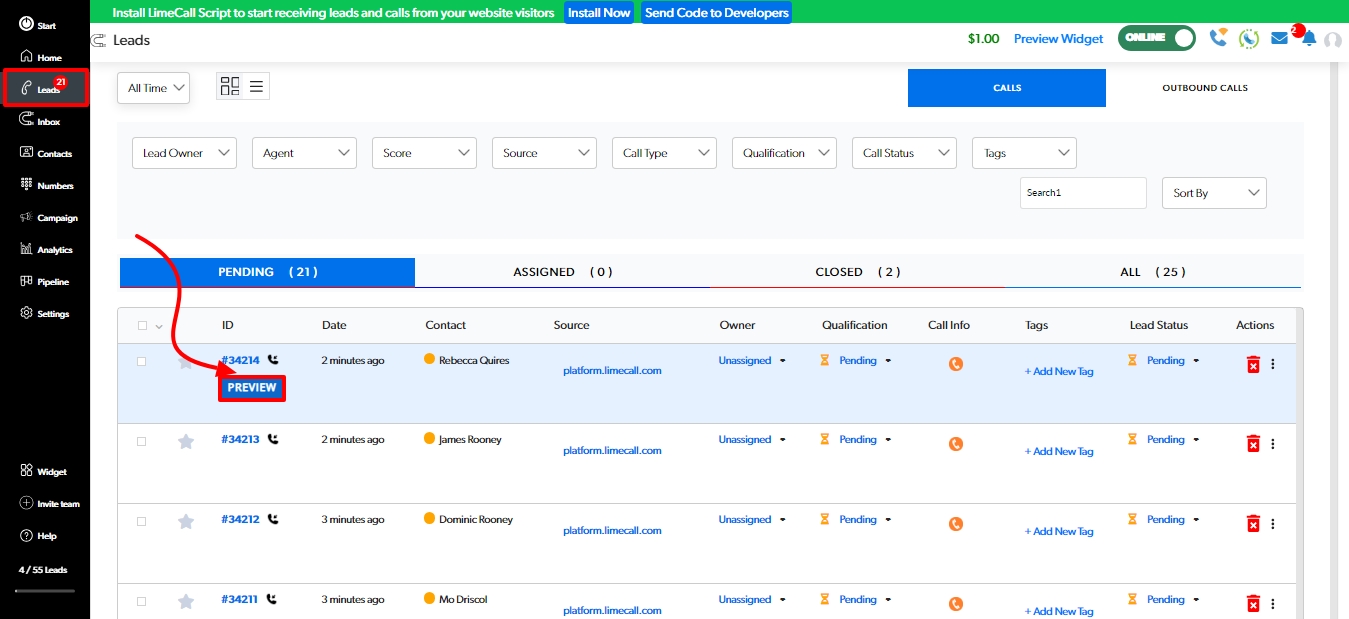 Managing leads with LimeCall's Lead Pipeline allows the process of tracking and nurturing leads as they move through different stages of the sales funnel. The goal is to identify and qualify leads, and then move them through the sales process in an efficient and effective way.