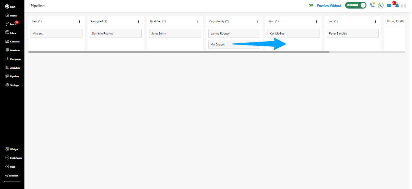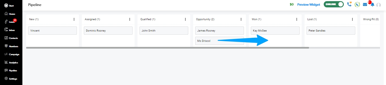 Drag and drop leads into stages with ease!