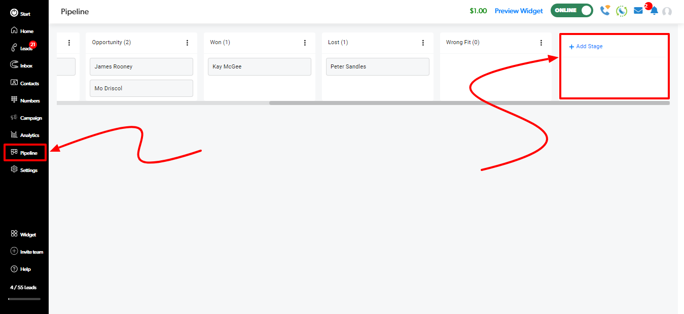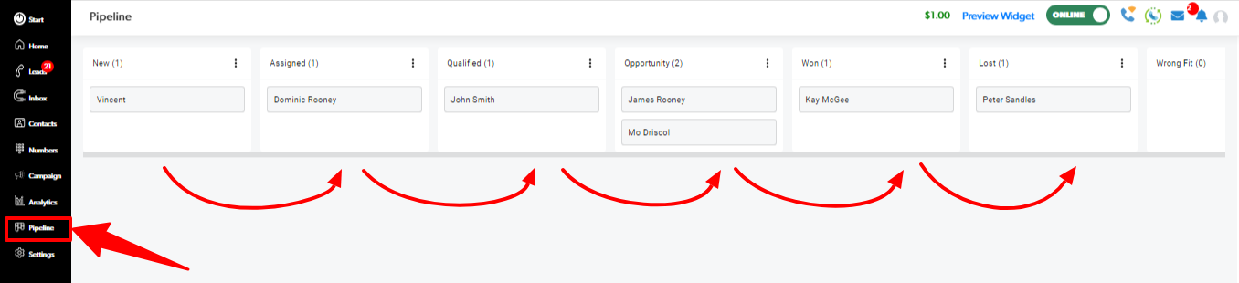 Select "Pipeline" to view your Pipeline of leads
