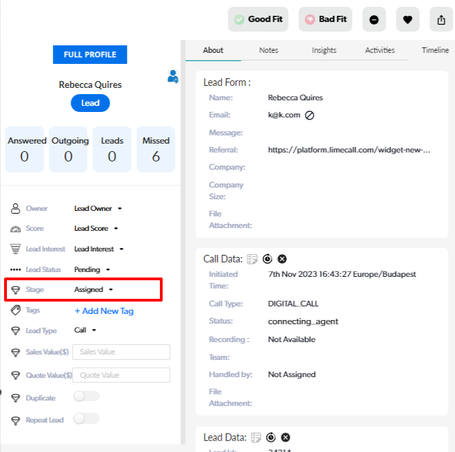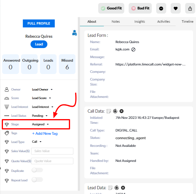The new "Lead Stage" will now be available within the Lead Preview and linked to your Pipeline!
