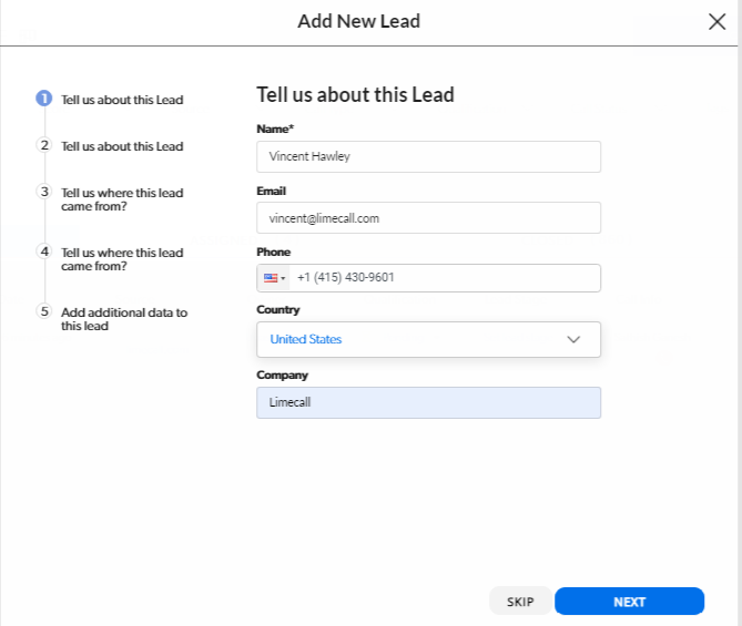 Here are the steps to manually add a Lead to LimeCall.