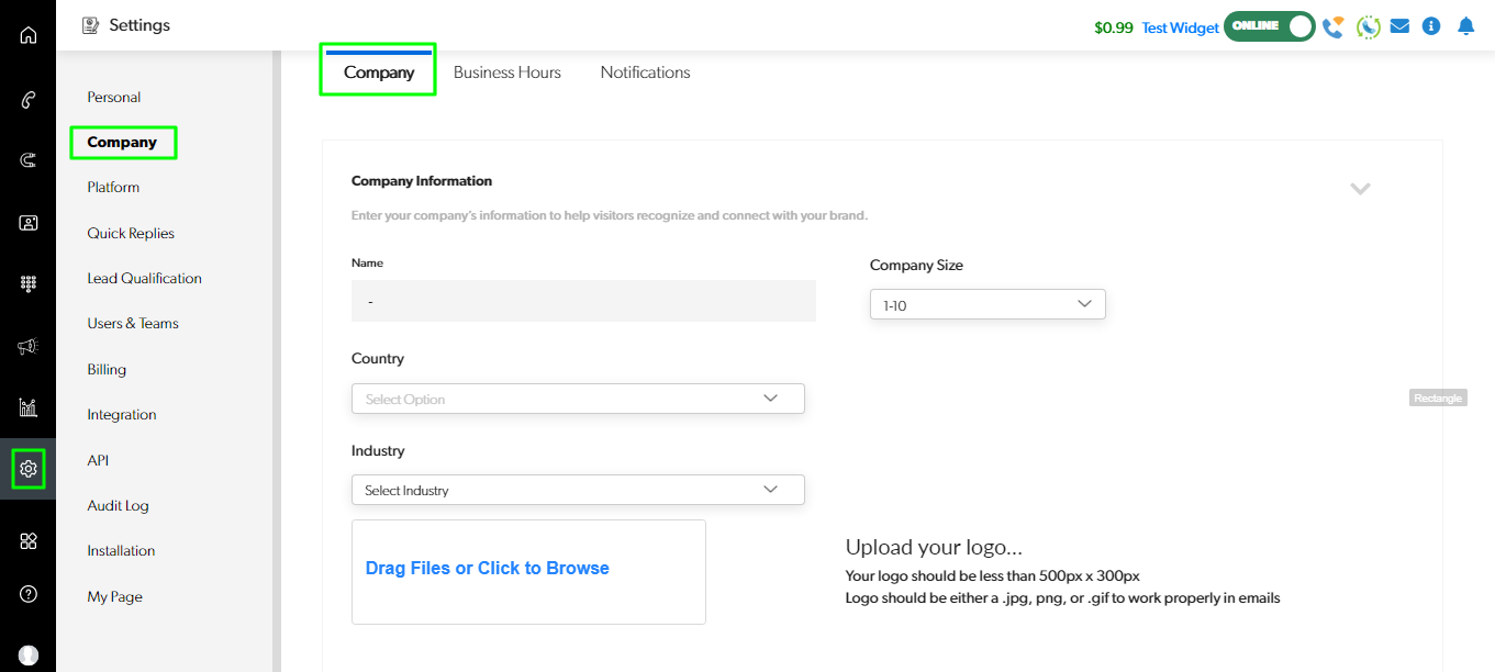 Updating this section will create the ultimate impression on your customers and leads, a professional impression. Add your company name, logo, website, LinkedIn, Twitter and Facebook, providing a greater social presence to relate to your customers.