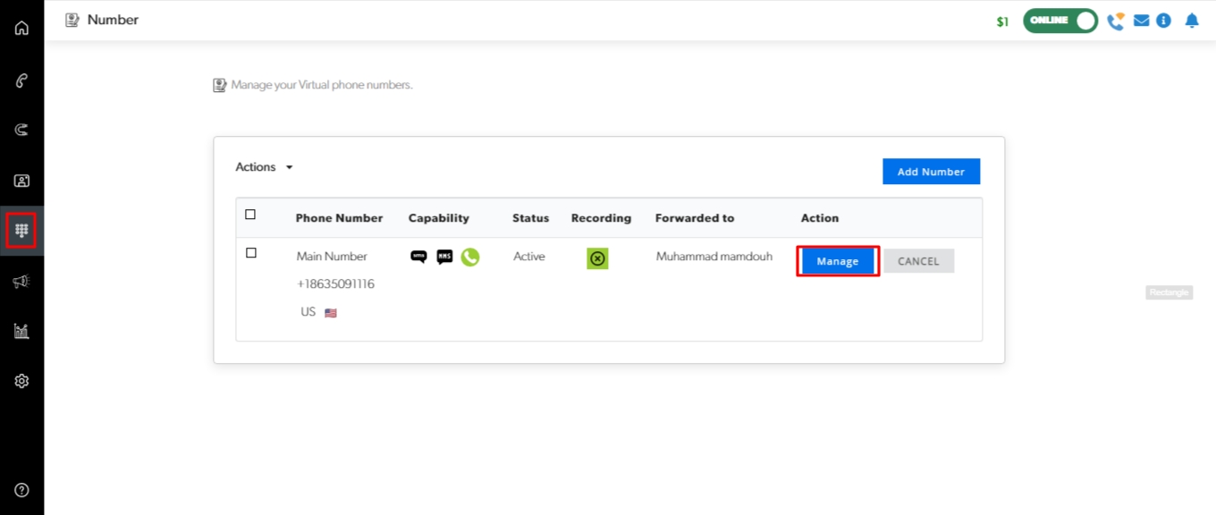 This action can only be performed by Admin roles. Please ensure your users and teams are assigned to the relevant number to receive and make calls.