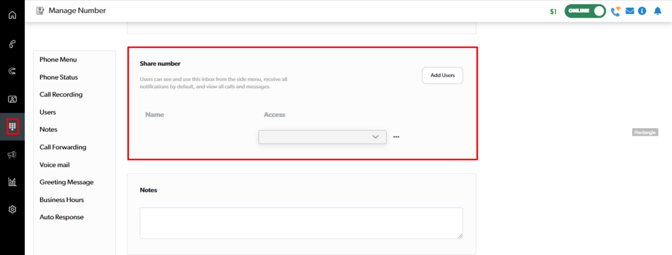 Share number with users / teams