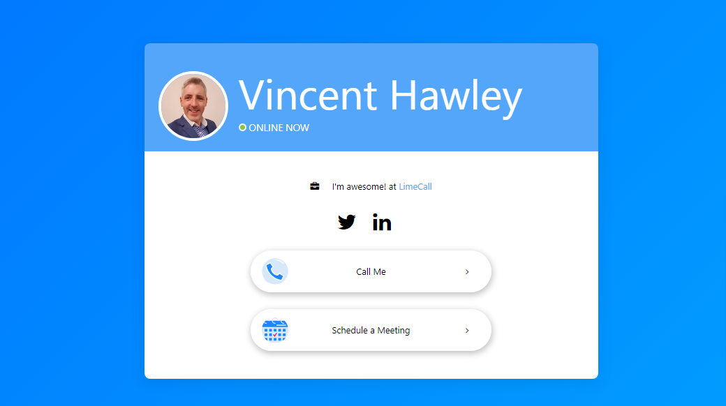 By configuring your My Page Settings you'll ensure the meeting / contact link you share with not only look professional and reflect your business or brand, but also display company URL and social links, such as Facebook, Instagram, WhatsApp, Twitter and LinkedIn.