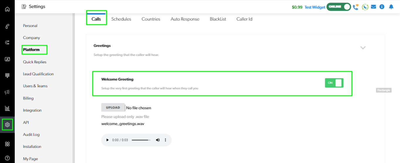 A professional recorded greeting message your customers will hear when the call begins, you can also upload your own!