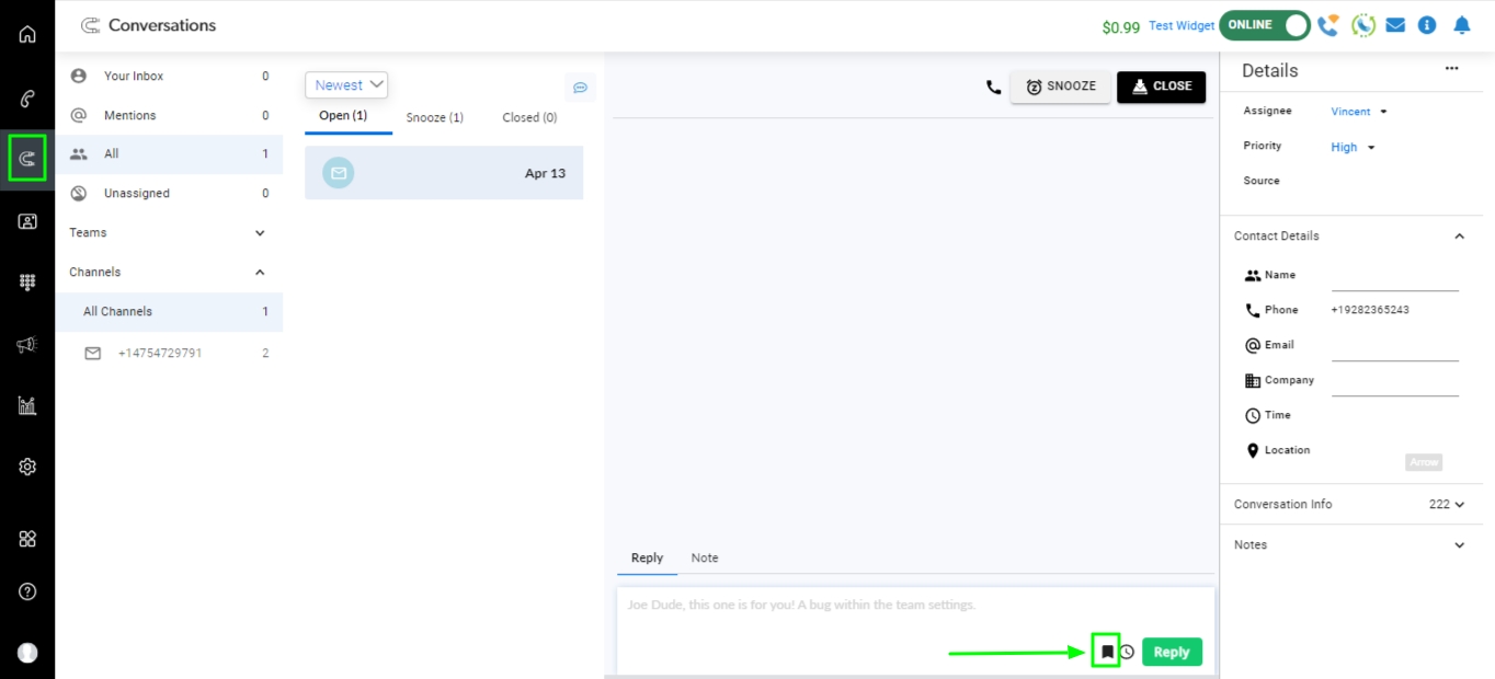 Once saved, your team can access all Quick Replies within the Conversations Inbox and select the Quick Reply button.