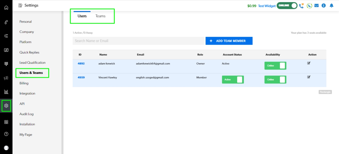 Setting Users and Teams allows your leads and customers to connect instantly with the right sales rep or team! Ensuring the ultimate experience for your prospects and customers.