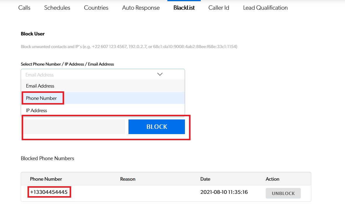 How to block users via phone number?