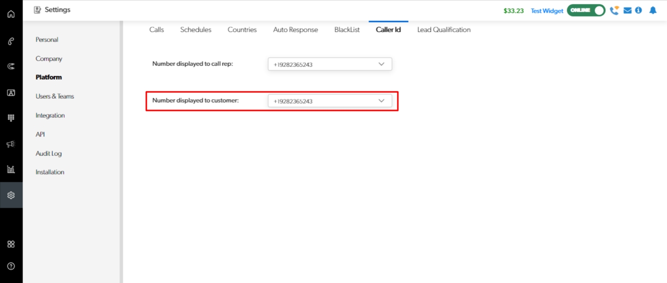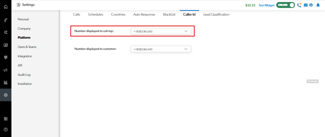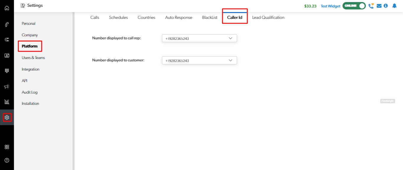 Settings > Platform > Caller ID