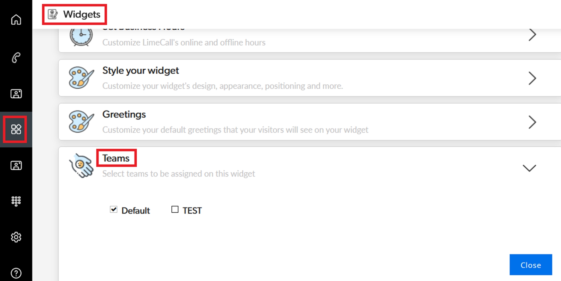 Step 2 : Click on 'Teams' and assign a widget to a specific team