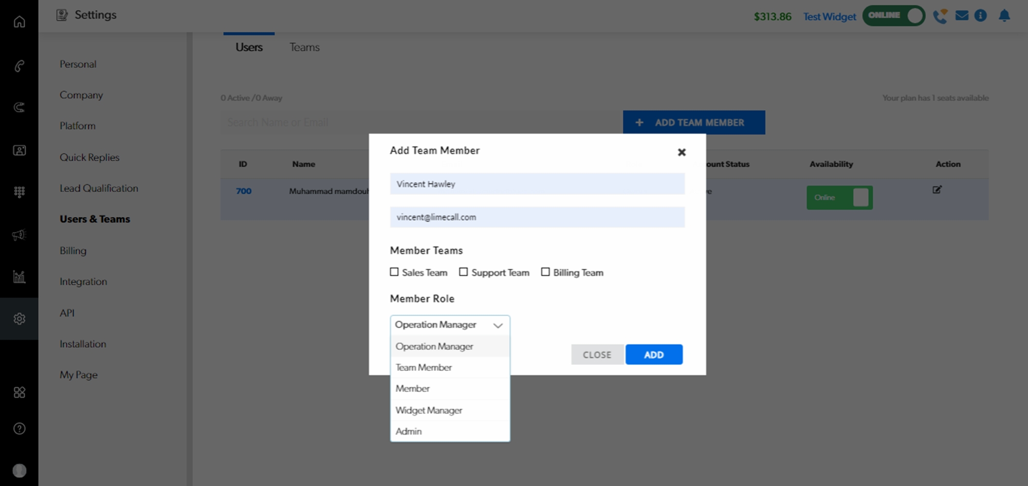 Each Role allows varied levels of access and permissions to your LimeCall account.