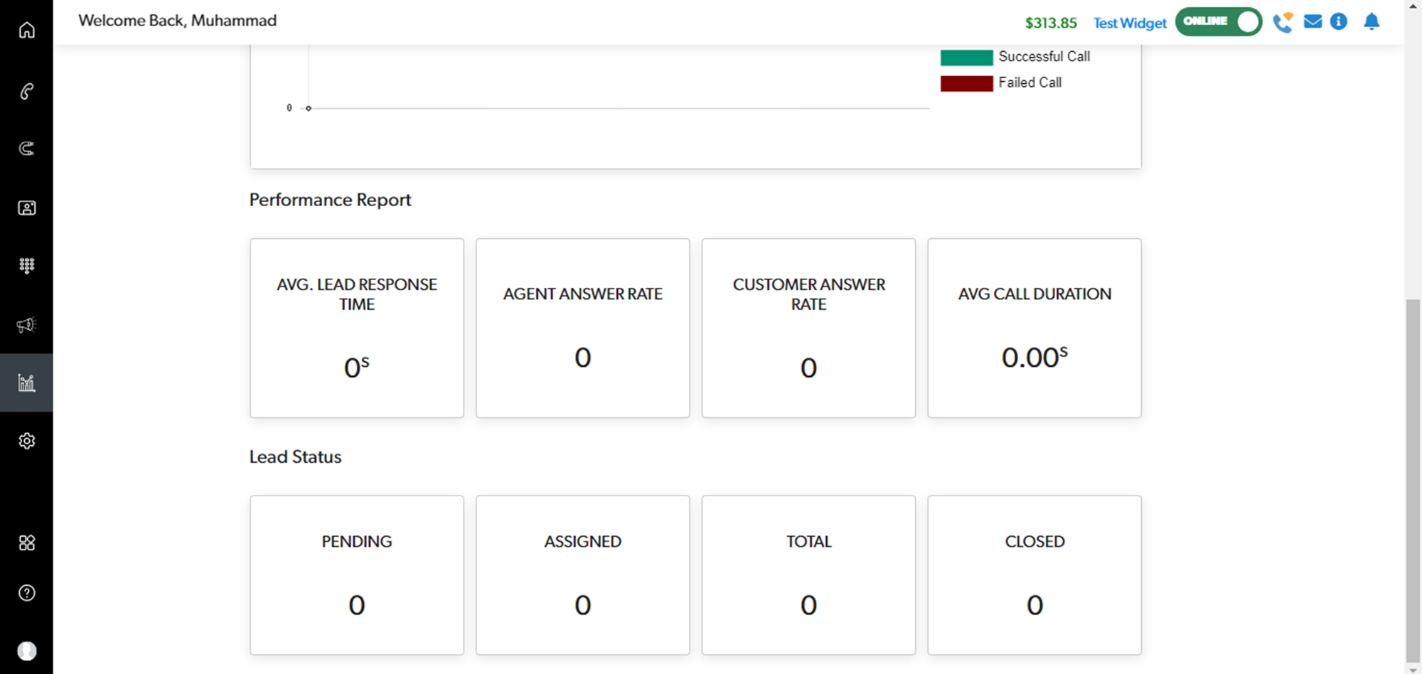 The customer answer rate is visible in the Dashboard as seen in the below image.