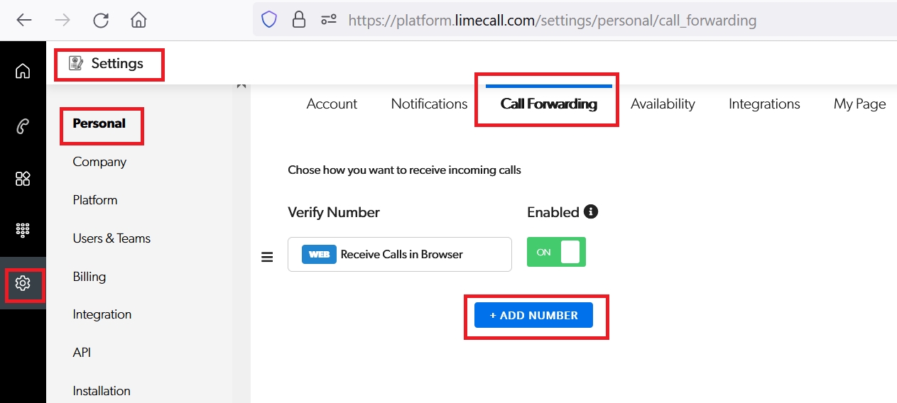 Go to Settings > Personal > Call Forwarding and select 'Receive Calls in Browser'