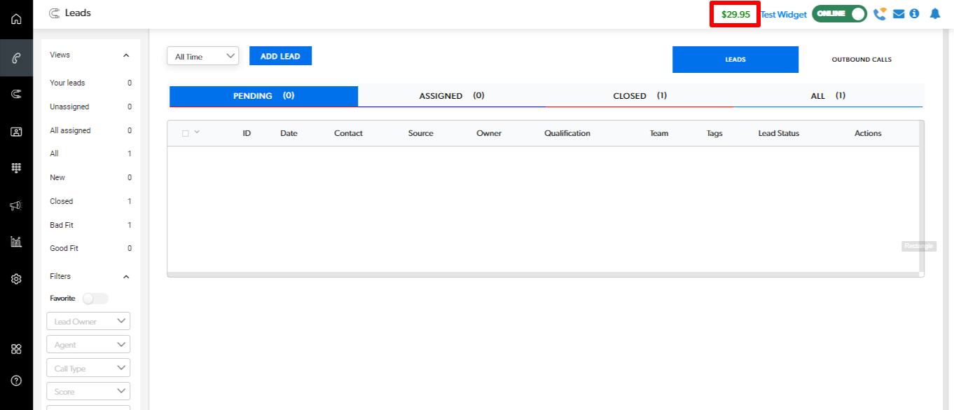 Ensure you have 'Calling Credit' on your account. Your account balance is displayed at the top of the screen as shown.