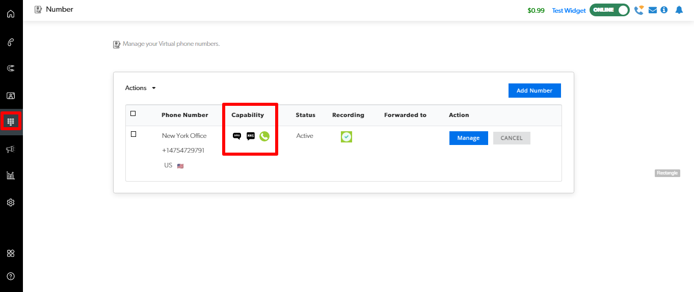 Identify the number in question. It's SMS and MMS capabilities will be displayed.