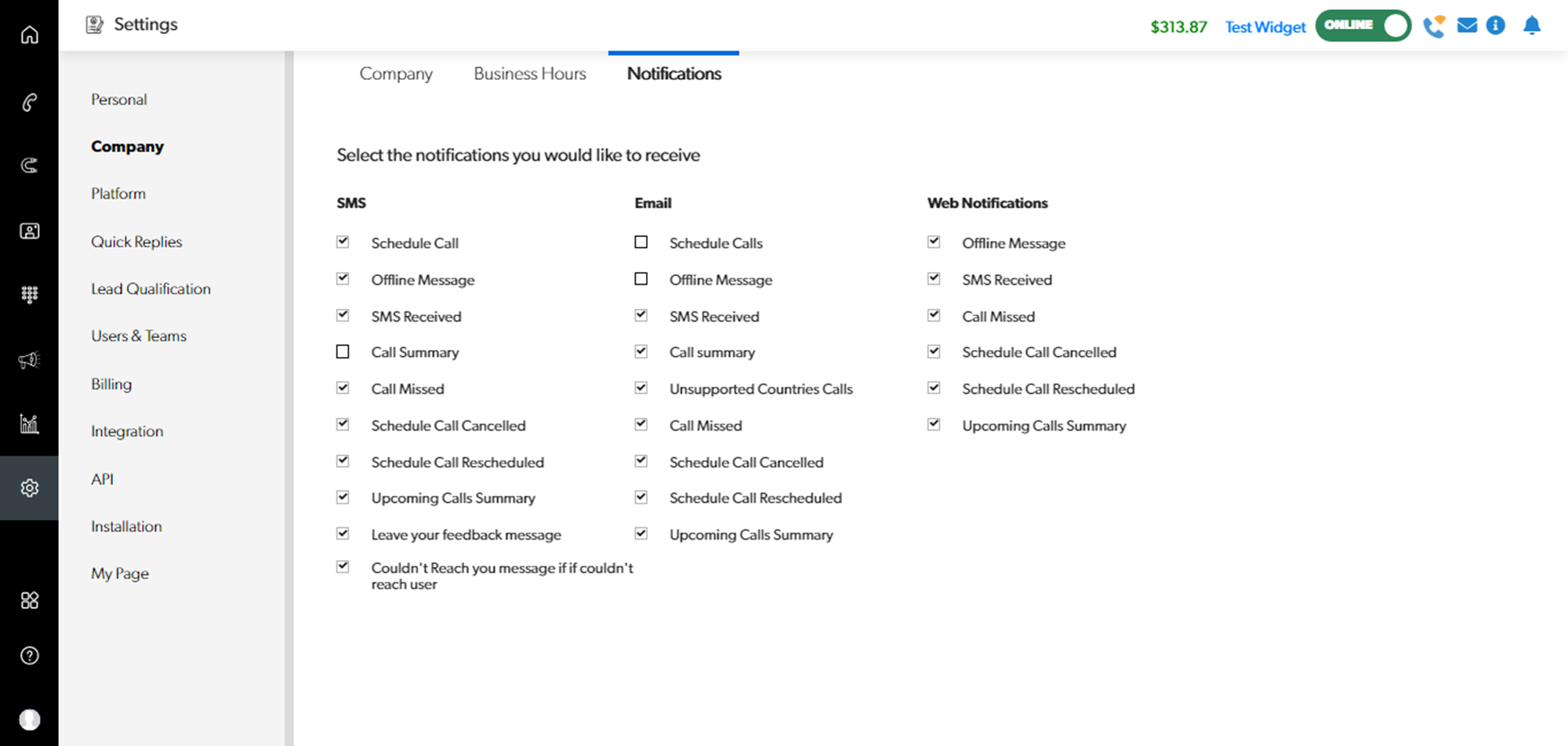 Settings > Company > Notifications