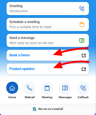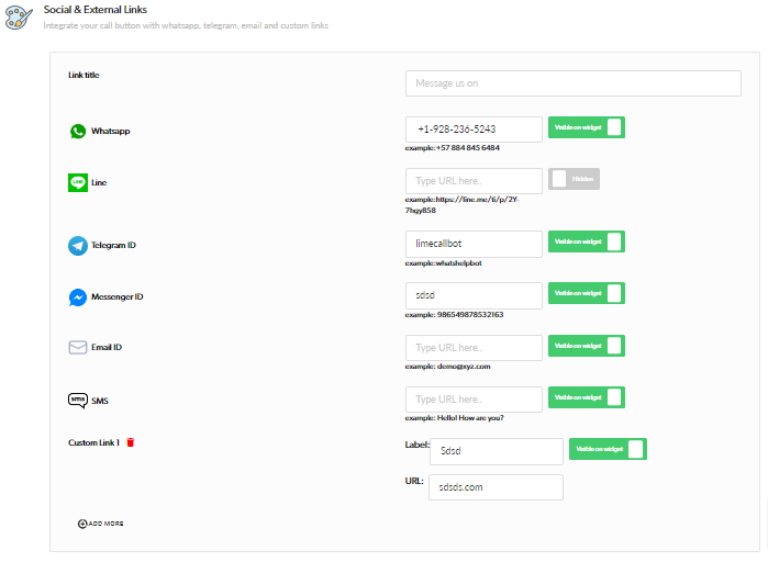 Adding social and external links to your widget is a great way to make it more informative and useful for your visitors. It also allows you to drive traffic to your messaging apps, website pages and other sites.