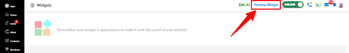 To test your newly added channel, select "Widget Preview" displayed in the header menu.