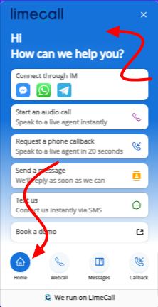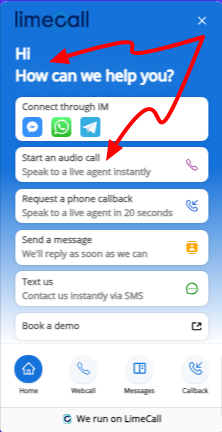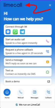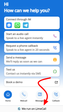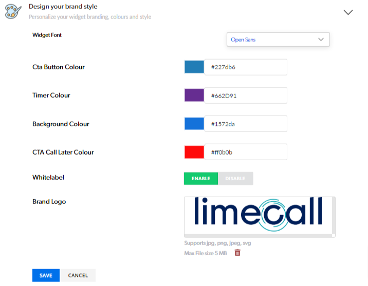 Whitelabel - Enable white labeling by removing the Limecall Branding on your widget. This is only available on selected plans.
