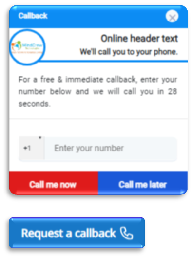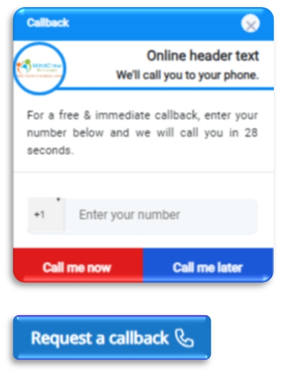 The callback widget, also known as a call-back widget or call-me-back widget, is a web-based tool or feature that allows website visitors to request a callback from your company. It is a customer engagement and communication tool commonly used in online customer service and sales environments. Extremely effective at increasing conversion rates.