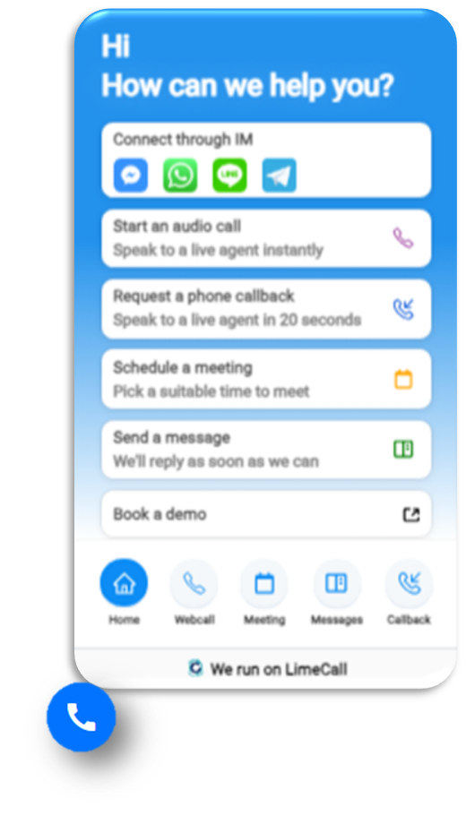 Provide the ultimate experience for site visitors, an omni channel connect approach. Combining all channels within your widget.